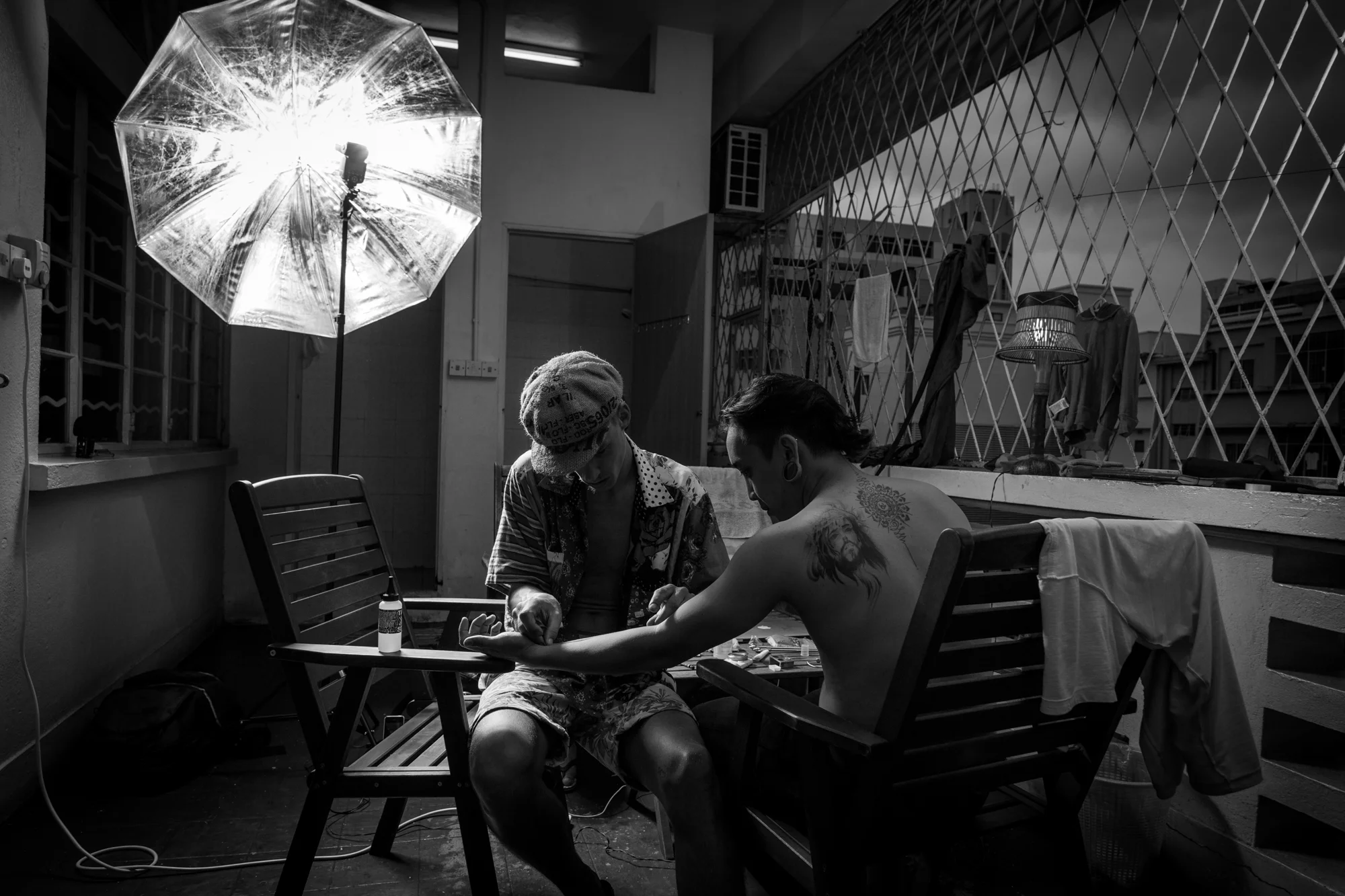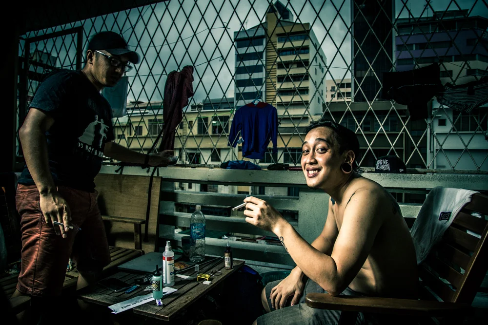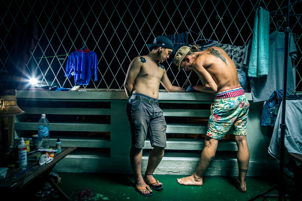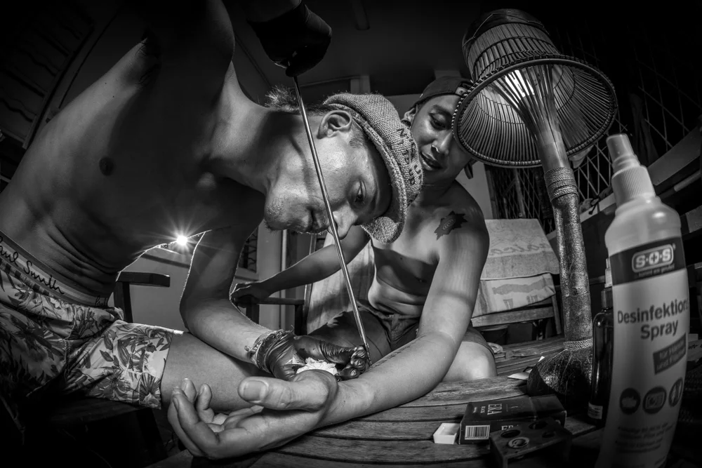 as we arrived on Borneo we met some great locals in KK... one of them (Rndy) counts himself to the Iban-tribe.... finally we had a really cool time with them and pepe tattooed them... ;)